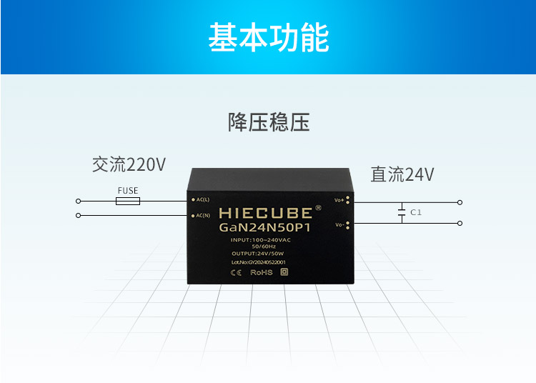 品牌:hiecube/高能立方 型号:gan24n50p1 隔离耐压:3000vac 输出电压精度:±1% 电源类别:ac-dc电源模块 模块质保年限:三年
