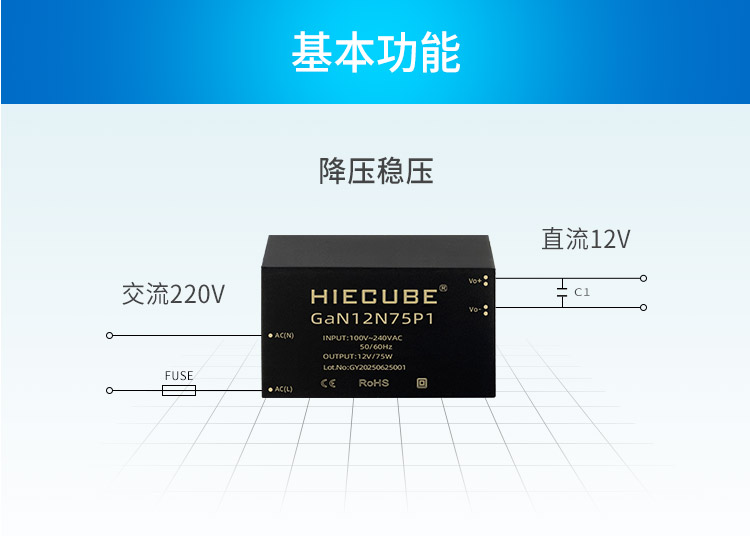 品牌:hiecube/高能立方 型号:gan12n75p1 隔离耐压:3000vac 输出电压精度:±1% 电源类别:ac-dc电源模块 模块质保年限:三年
