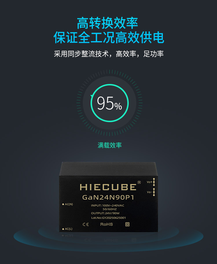 品牌:hiecube/高能立方 型号:gan24n90p1 隔离耐压:3000vac 输出电压精度:±1% 电源类别:ac-dc电源模块 模块质保年限:三年